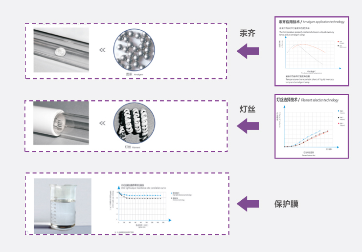 UV control technology, design dedicated amalgam for each type of lamp