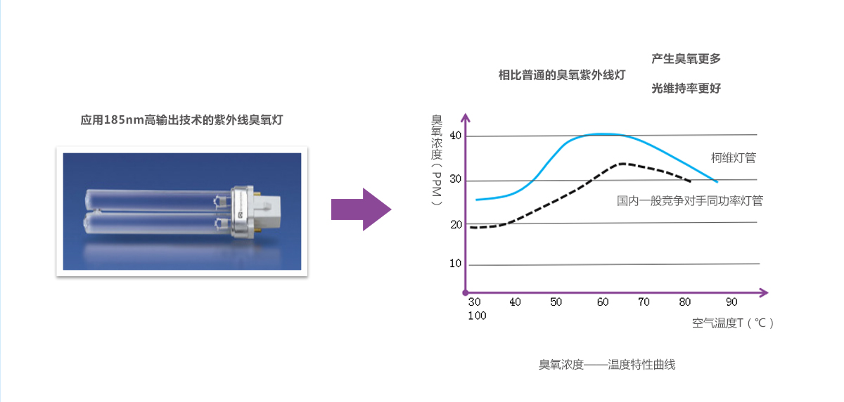 185nm produces more ozone or hydroxyl radicals, 253.7nm UV is UV advanced oxidation catalytic energy, can be widely used in indoor formaldehyde treatment, industrial waste gas VOC treatment, remove COD in water